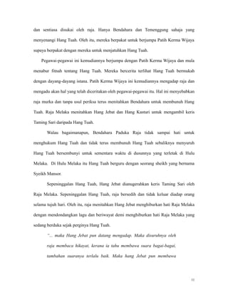 Hikayat Hang Tuah HHT edisi 1975 terbitan Dewan Bahasa dan Pustaka Kuala Lumpur yang dikendalikan oleh Kassim Ahmad. Cuma kedengaran bunyi angin dan daun yang berguguran. 3 1 1 Sejak itu Hang Jebat mengambil alih tugas Hang Tuah sebagai Laksamana termasuk.
